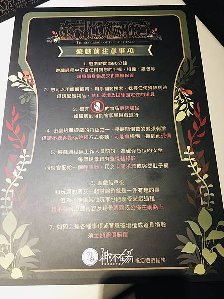 其他注意事項就是密室逃脫的經典注意事項